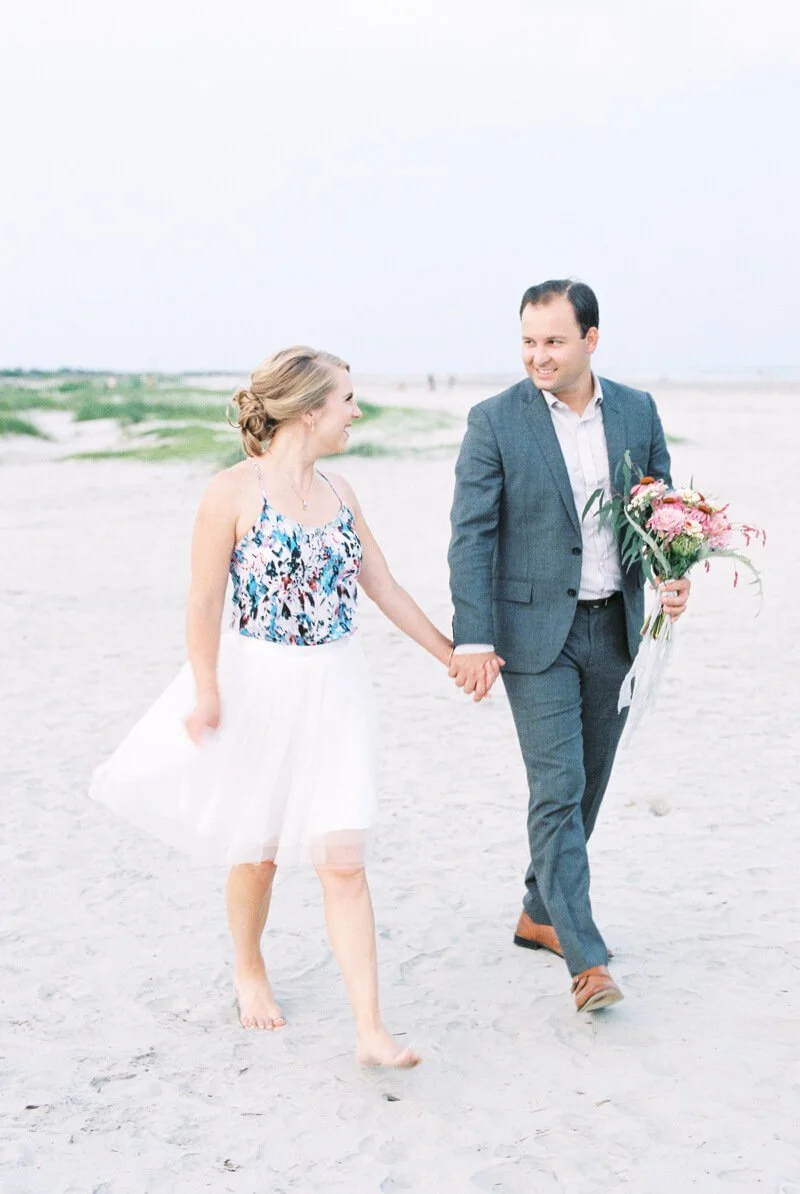Being a Charleston wedding photographer is what dreams are made of! We ventured to the downtown Charleston historic district, where driveways look like paths to castles, with cobblestone and bricks for as far as the eye could see. We walked the few blocks to the oceanfront, where these two danced along the docks, swaying to the sound of waves, muffled by passing yachts as they entered the marina. For a moment in between camera clicks, we closed our eyes just to take it all in. How funny, we had only swapped one coast’s ocean for the other, yet everything was so different. The waves rolled in smaller and smoother, the sound was muted as it skimmed through the sea grass, all along the beach where the pure white sand was as fine as powdered sugar. Birds were sounding in the distance, but not the regular seagulls we’ve grown to know so well. The air was much warmer, smells much softer, and nowhere were there fences. Weird as that may sound, everywhere in California is gated. Everywhere. It was wonderful to feel the openness and not feel closed off to the rest of the world.