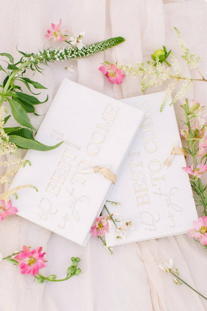 An elegant vow book is a beautiful way to capture your thoughts and words. These vow books are intended to be used for the wedding day and beyond. They’re gorgeous enough to display as home decor!