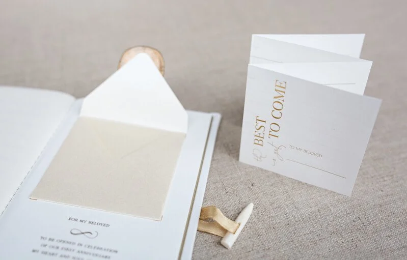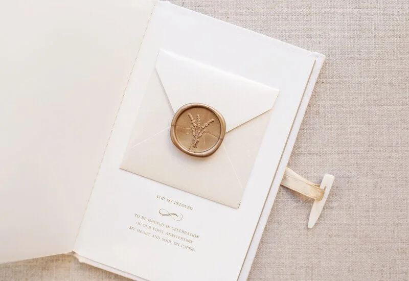 The Sophia Collection is their ready-made line of vow books that comes in a selection of two soft colors to create a flawless aesthetic. The books are full of intentional details from beginning to end - bone clasp enclosures, foil covers, wax seals and beautiful quotes which are sure to delight the most discerning couple. And as a special touch, each book features their signature first-anniversary love note. These love notes, written in the days leading up to your wedding, are read on your first anniversary (the year of paper!) as a way to remind you of your commitments and love for one another.