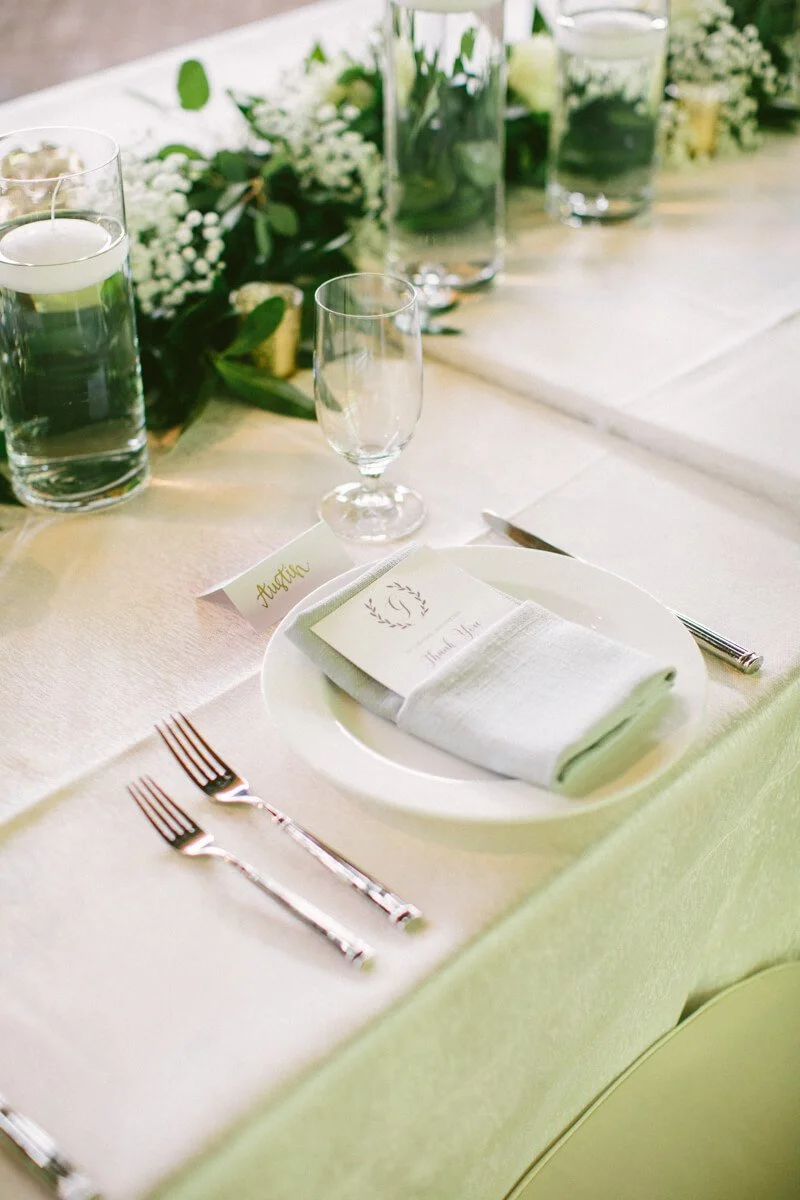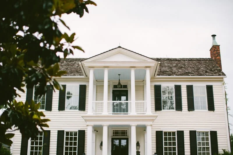 They chose dark greenery and white blooms to fill their tables, and their head table was filled with green, white and gold accents. Embellished blooms created a stunning bouquet, as well as a simple white flower crown for Tabitha. The Sutherland Estate and Gardens looks like you stepped into a village in Europe mixed with a Southern flair. The grounds complemented the color theme, with a ceremony backdrop of dark greenery and the white, Southern-style home.