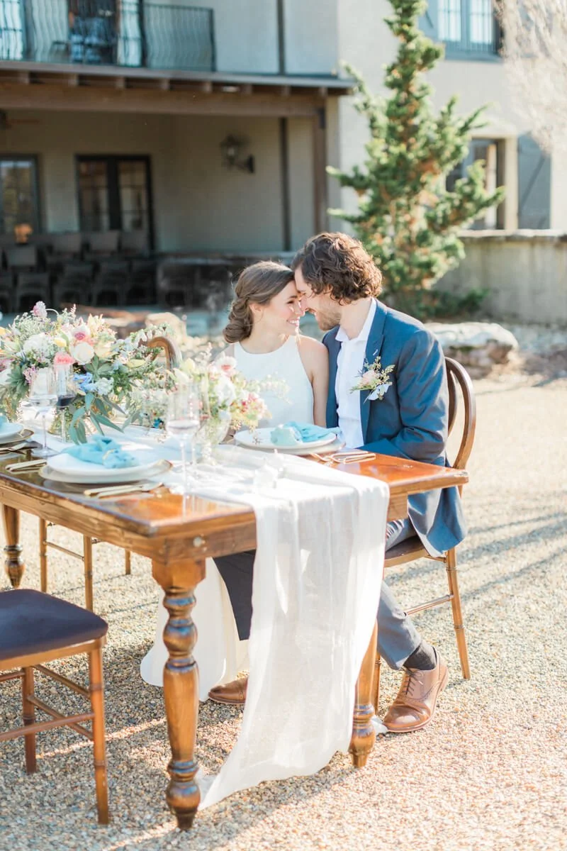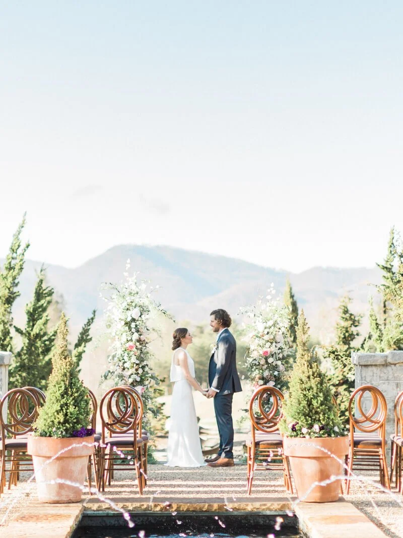 The mountain view from Hotel Domestique's courtyard transported us to the Italian countryside without ever traveling across the pond! This picturesque natural backdrop set the stage for a timeless and intimate wedding, inspired by simple and natural elements that are enveloped by romantic, bright, and complex colors.
