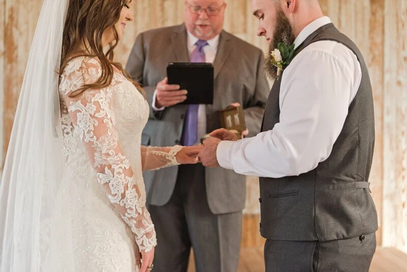 Brandy got ready at her Uncle’s house in Walhalla, SC. Her sisters and mother were there to help her get into her dress. Before heading to the ceremony, she had the sweetest first look with her Father. Tears filled his eyes as he saw how beautiful his daughter looked in her gown. Brandy wore a lace fitted dress with stunning lace sleeves and a long veil that surpassed her train. Brandy and Cody tied the knot in a quaint little chapel in their hometown of Walhalla, SC. They said “I do” in front of a small crowd of loved ones before heading up to the reception.