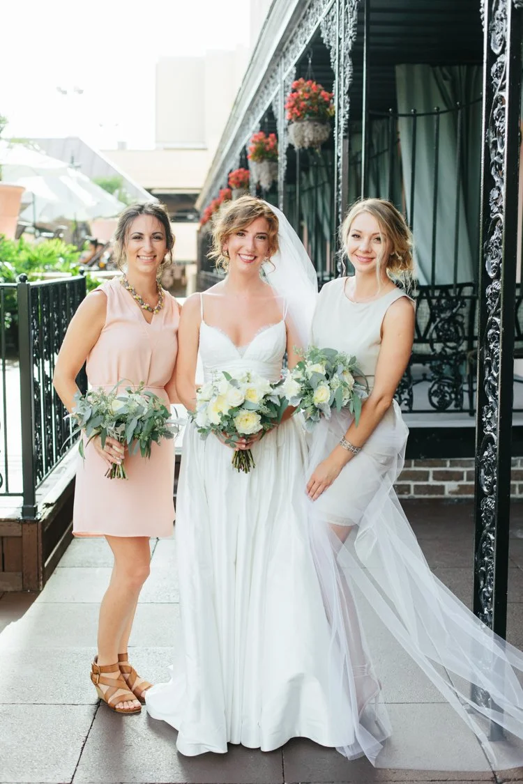 The afternoon started with Liz and her two bridesmaids getting ready in matching pajama sets at the rental house downtown. Once they helped her slip into her gorgeous wedding dress with a ball gown skirt and pockets they were ready to head to the ceremony.