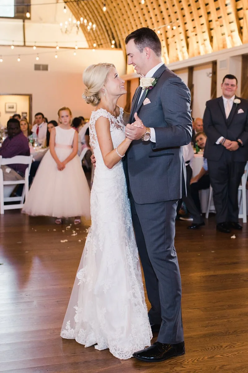 From the photographer: The massive ceilings and interesting architecture of the Winmock made for the perfect ceremony and reception location for Carley and Chase. It was a beautiful August day, filled with sunshine, laughter, tears and love. Carley’s sweet bridesmaids prayed over her, to calm her nerves and bless her married life to-come as they got ready in the bright and luxurious bridal suite. The blush bridesmaids dresses and eucalyptus-filled bouquets complimented Carley’s fitted lace gown.
