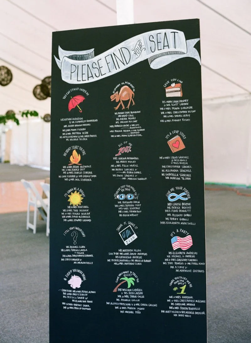 A chalkboard might seem like a simple object, but when used in a wedding or reception, it can be a fabulous accent or decor piece. There are so many ways to incorporate a chalkboard into the ceremony or reception from offering directions to guests finding their way around the venue, to highlighting the reception menu. Use a chalkboard as a program guide or sign for guests they work perfectly for any style wedding. For an outdoor feel, a rustic or simple frame is perfect to display the chalkboard, or, a beautiful, ornate frame looks stunning at a more formal wedding.