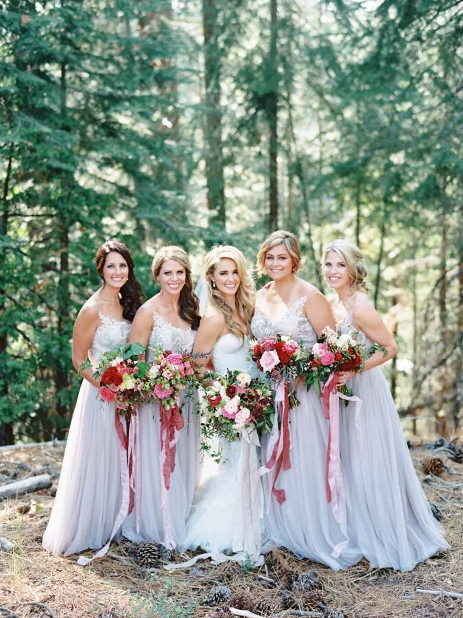 Gray is the best of both worlds. It can easily be combined with other colors or can stand out on its own. Your bridesmaids will feel chic and beautiful and best of all, will look marvelous no matter the time of year.