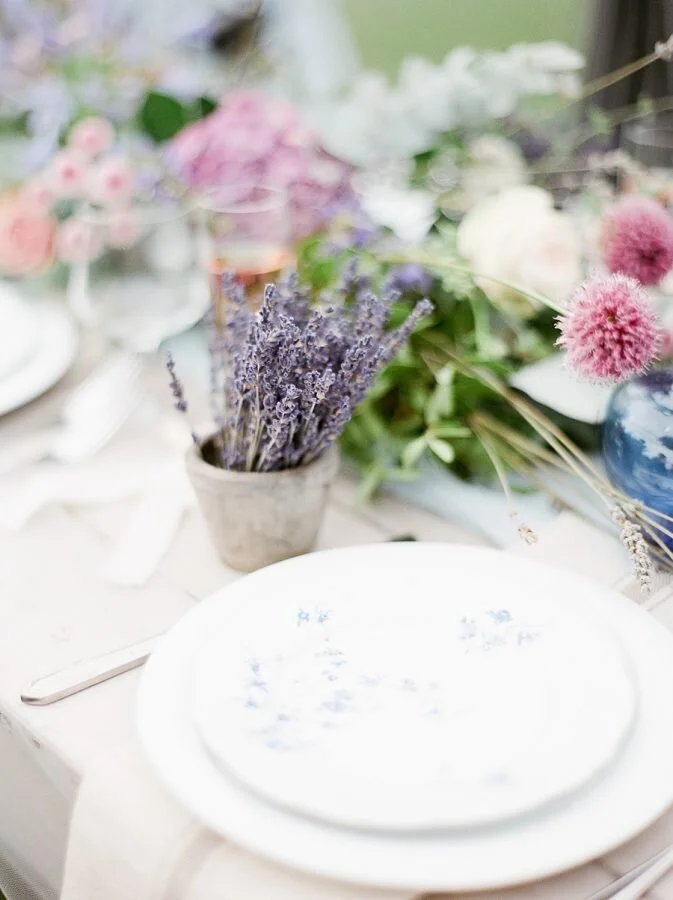 Lavender is a versatile flower to a wedding in many ways it provides that perfect splash of delicate color, the fragrance is perfect for a spring or summer wedding and the flowers create beautiful accents around tables or other decor items. Using a single, uniform flower throughout the wedding and reception is a great way to keep the look simple, but very elegant. A lovely sprig of lavender is the perfect style option for the groom’s boutonniere. Instead of using an ornate flower arrangement for a bohemian or rustic chic wedding, think about keeping it light and fresh with soft lavender. Hold a lavender bouquet and dry it after the wedding the dried flowers can be used as a sachet or heirloom to keep for years to come!
