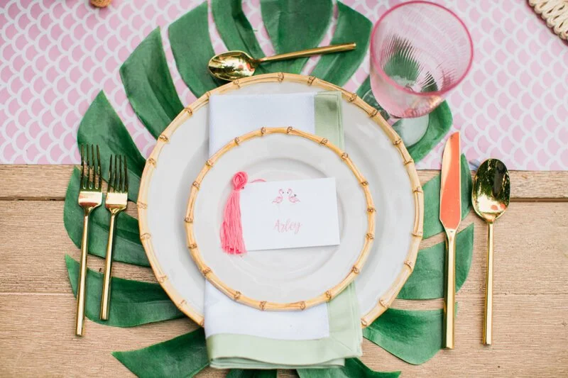 One of the easiest ways to create a tropical feel for your North Carolina wedding is to add palm leaves. There are so many ways you can use them. One of the first ways to incorporate them is by creating an invitation suite that has palm leaves on it.